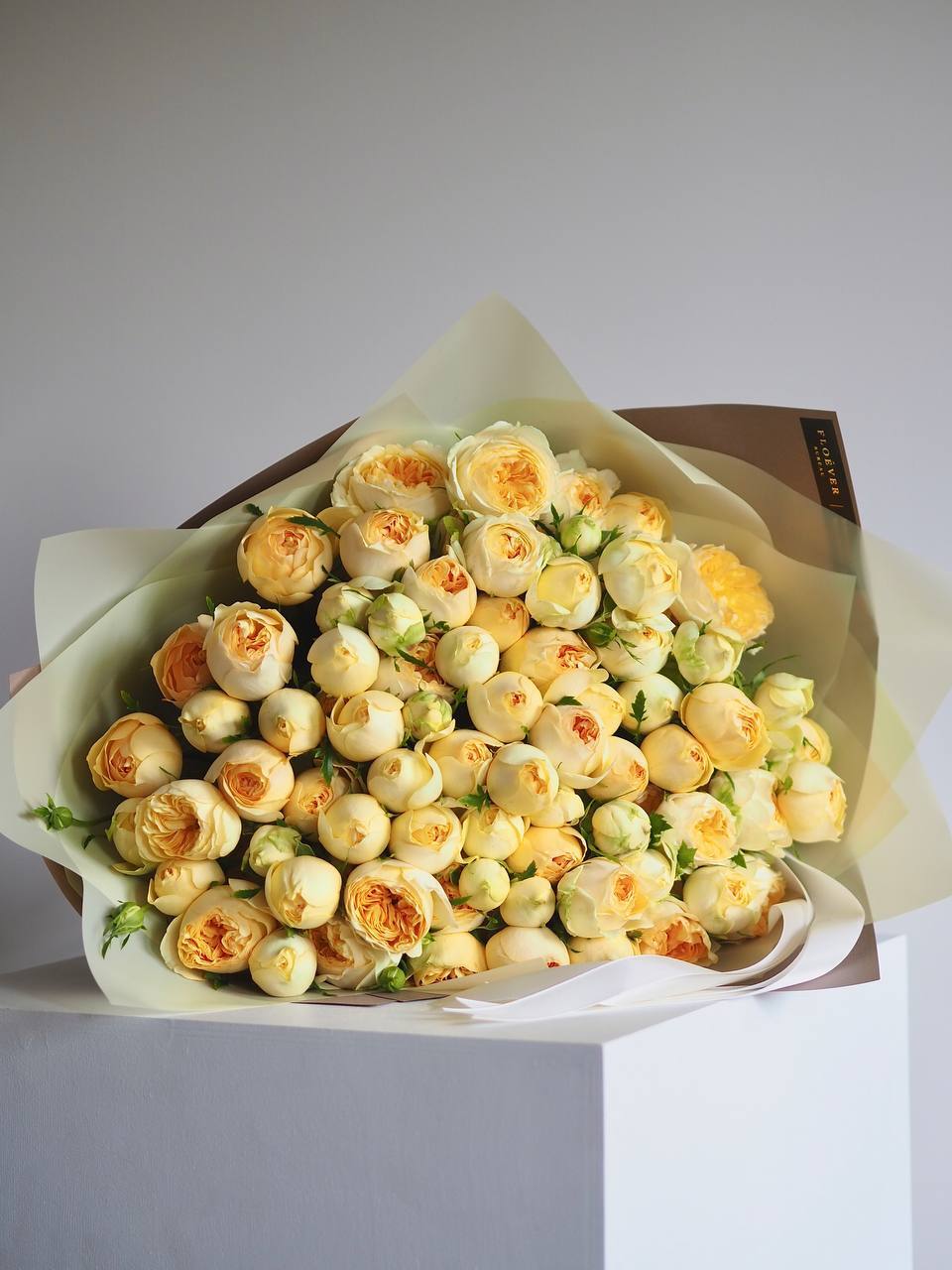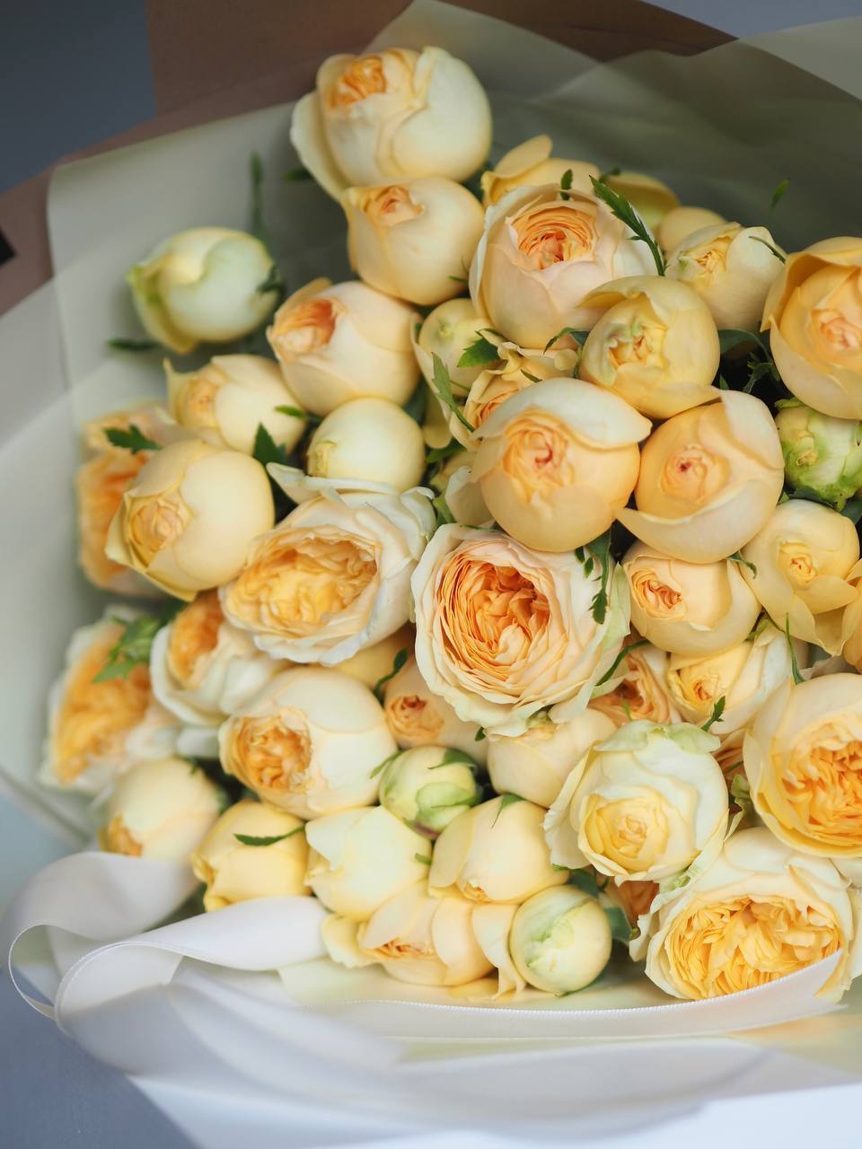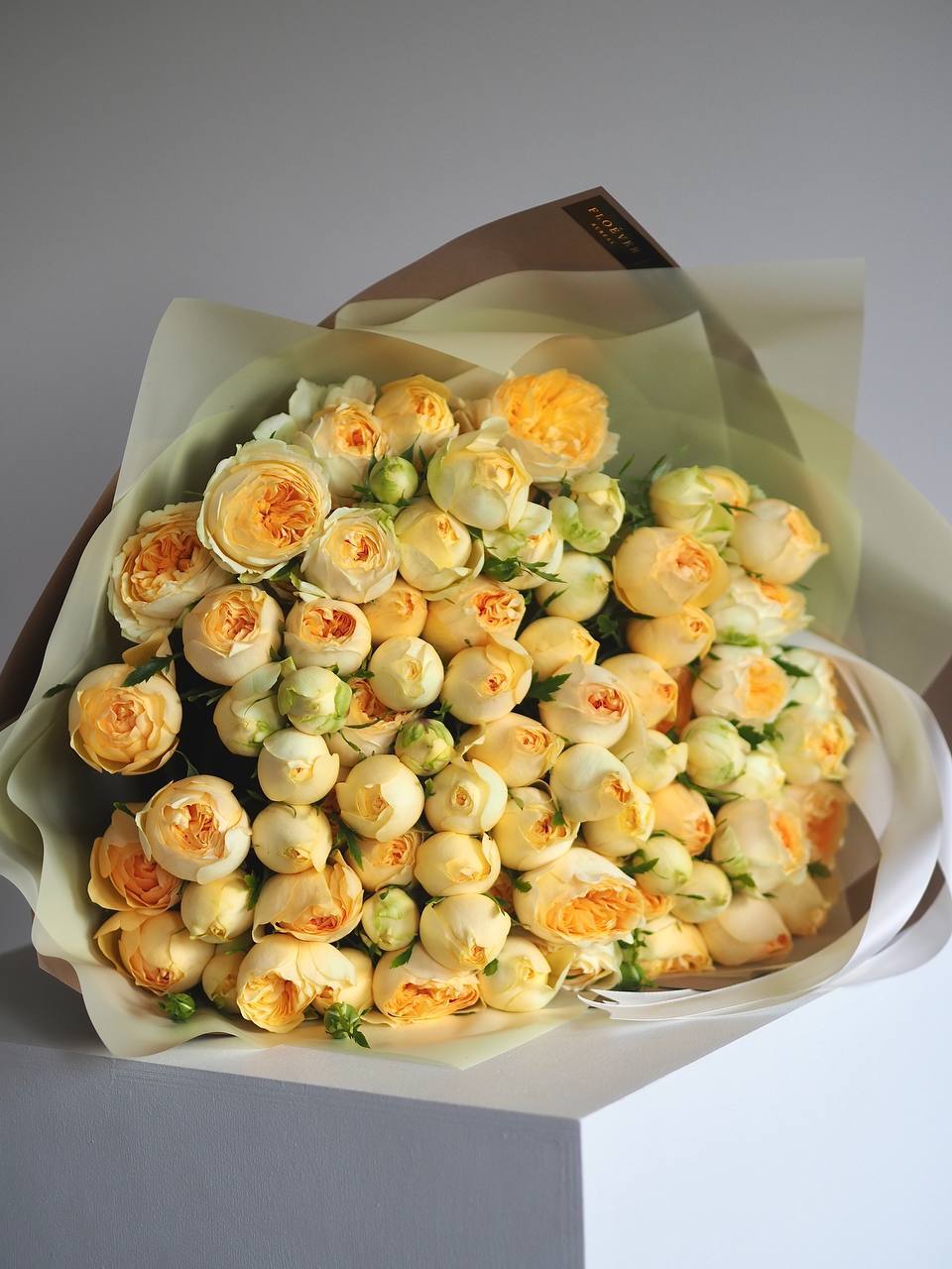 На фото - букет из 15 кустовых роз Сильва Санни. Вы можете выбрать цвет внешней упаковки букета и увеличить количество цветов.